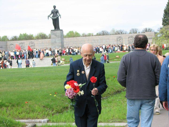 Paying attention to this sudden mixture of cultures is the tender. This always smiling woman sits at her own booth near the bar with several pads spread about which apparently need her attention. From time to time she looks up, partly to see if we need anything and partly, it seems, to catch what she can of our conversation. She normally likes to play traditional music on the player whenever I sit down, but when she sees me join this veteran and his son, she puts on Shostakovich. We all recognize it immediately and the old man smiles. Composer Dmitri Shostakovich wrote his Seventh Symphony, the Leningrad Symphony, in the forties and performed it for the first time to a packed theater in his besieged city of Leningrad. Despite the rattle of Nazi bombs exploding in the background, no one left the performance. Today in the memorial cemetery in that city where nearly 700,000 people are buried, Piskaryovskoye Cemetery, it is still played while thousands of people pay their respects. I have spent many Victory Days there, meeting veterans, offering them a carnation in thanks for their work in the war, so it is an honor to share tea with this veteran.