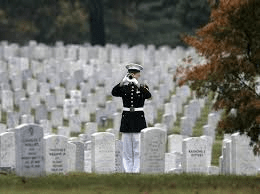 When my Uncle Tom Burton died, the service was held at Arlington National Cemetery. He was a war hero, then a sheriff, always a father and a fine man. He lived a long life and it was an honor to be there when a marine knelt in front of my cousin, Audrey, and whispered, “On behalf of the President of the United States…” and guns were fired, and a soldier stood amidst some headstones and saluted the entire time. Nearby a horse-drawn carriage waited.